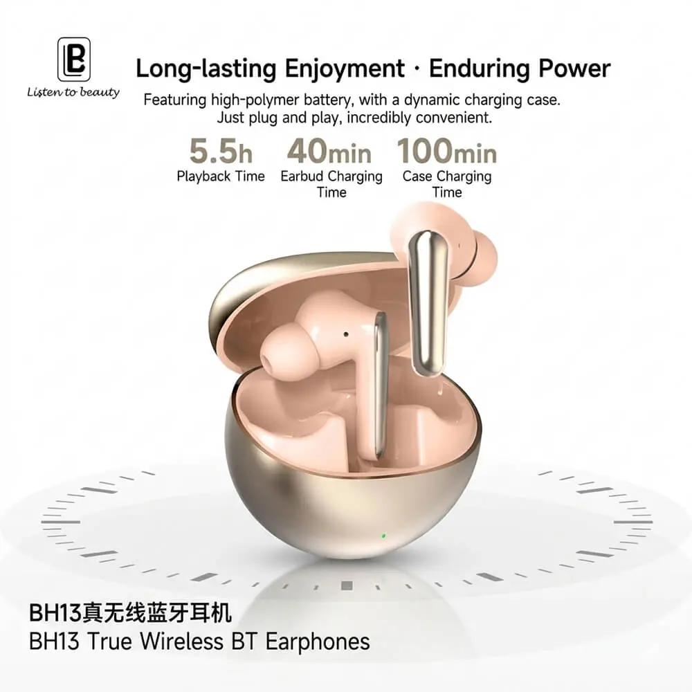Disponibles en Mercachip, los auriculares BAVIN BH13 son la combinación perfecta entre moda y rendimiento tecnológico. Su diseño ergonómico «in-ear» garantiza un ajuste seguro, mientras que su estuche de carga con acabado esférico y metálico no solo protege tus auriculares, sino que se convierte en un accesorio de lujo para tu día a día.