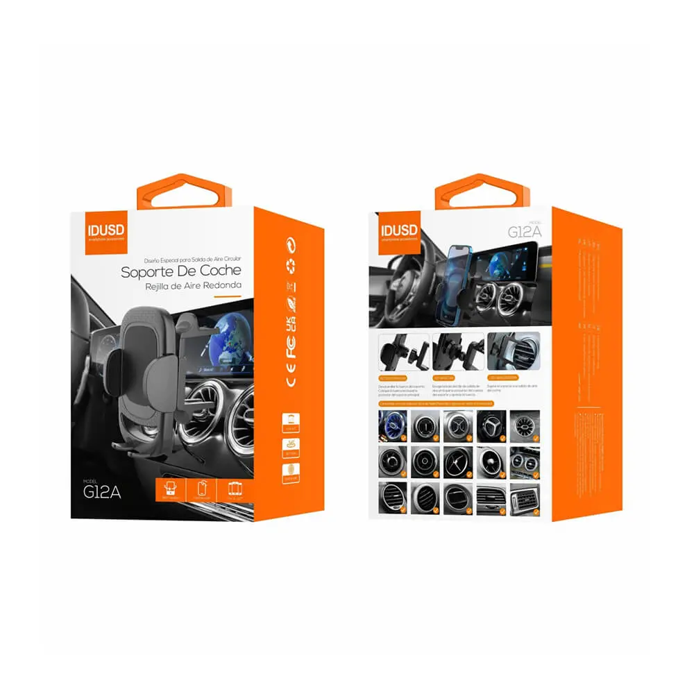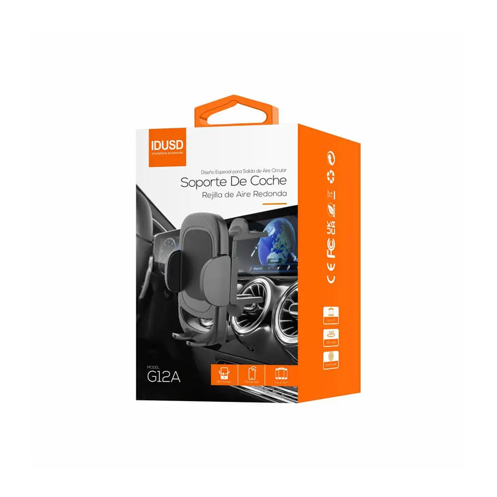 Si tienes un coche con salidas de aire circulares, sabrás que encontrar un soporte estable es todo un reto. El Soporte de Coche Rejilla Redonda (Ref: G12A) ha sido creado para cubrir esta necesidad, ofreciendo un montaje preciso y seguro para tu smartphone. Gracias a su mecanismo de ajuste específico para diámetros de entre 60 y 70 mm, este soporte garantiza una fijación firme que elimina las vibraciones incluso en carreteras irregulares.